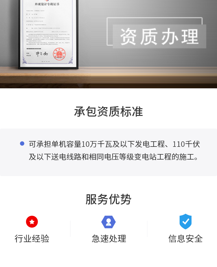 以上關于”電力工程施工總承包資質標準(三級)“資料僅供參考,若想詳細更多信息,歡迎來電咨詢:400-600-2247(免市話費),每天前10名咨詢的客戶可享受公司注冊免費核名服務!